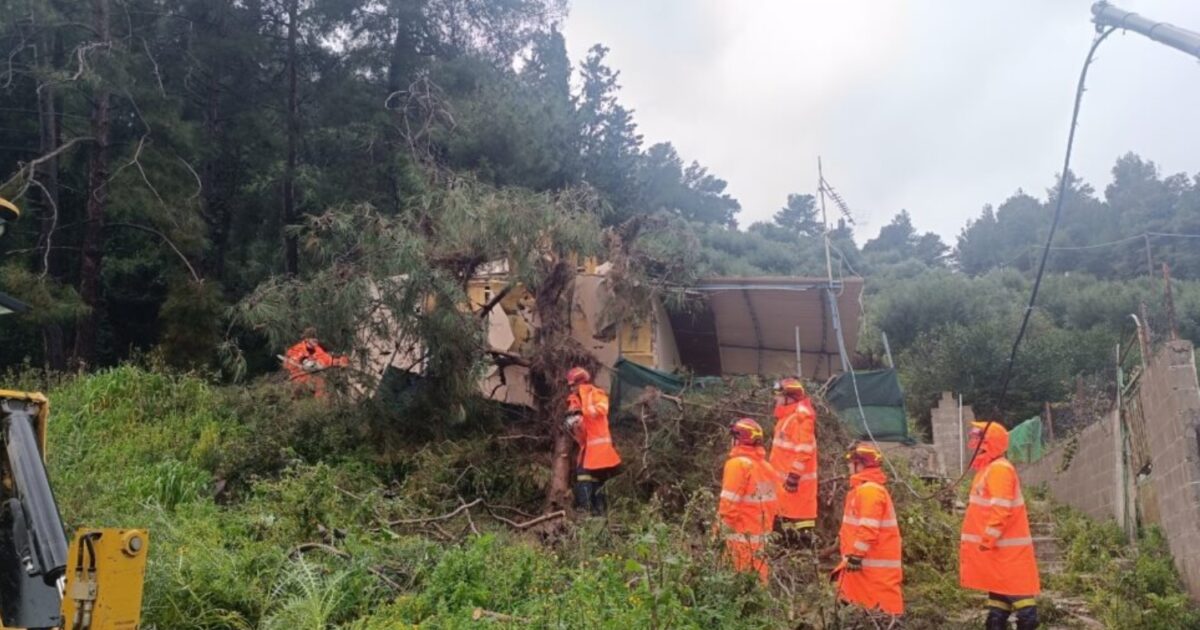 Την Παρασκευή μάλιστα, ένα μεγάλο πεύκο έπεσε στην οροφή σπιτιού προκαλώντας του τεράστιες ζημιές.