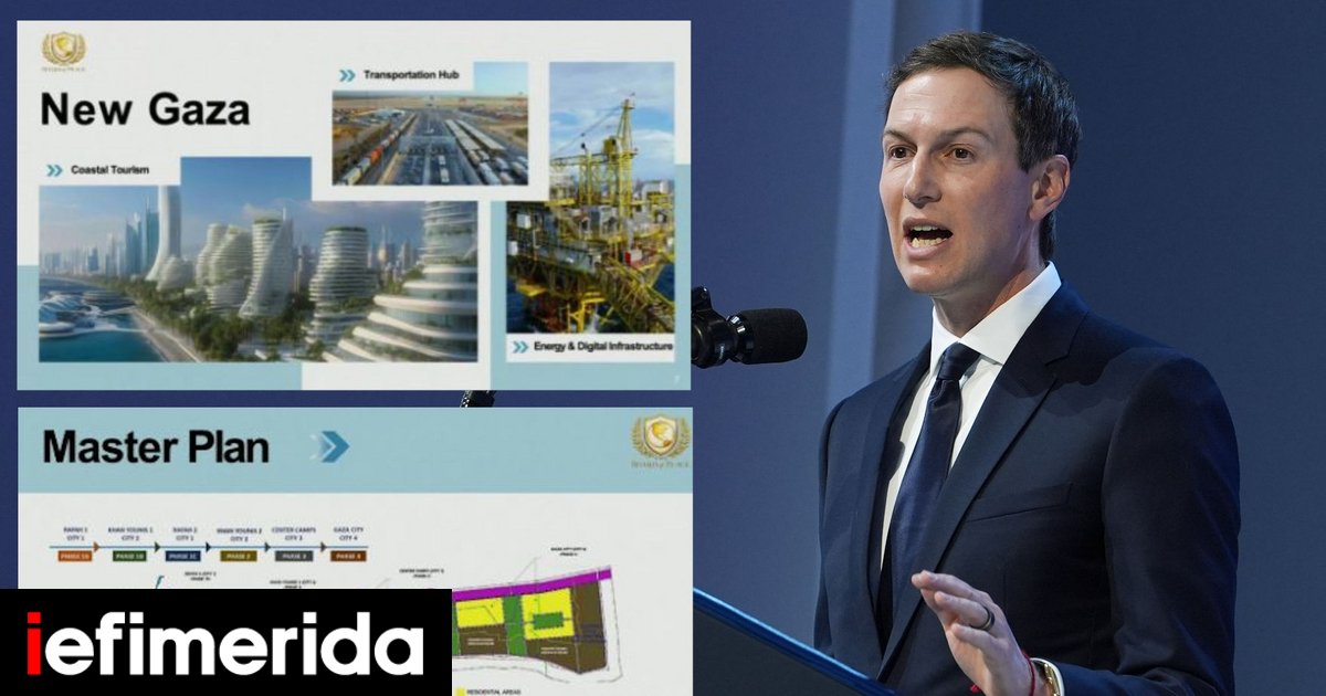 Ο γαμπρός του Ντόναλντ Τραμπ, Τζάρεντ Κούσνερ, ο οποίος διαδραμάτισε καθοριστικό ρόλο στη διαμεσολάβηση για το ειρηνευτικό σχέδιο στη Γάζα, έλαβε τον λόγο στην τελετή συγκρότησης του Συμβουλίου Ειρήνης. Αφού εκθείασε τον Αμερικανό πρόεδρο, παρουσίασε ένα «γενικό σχέδιο» για το μέλλον της Γάζας, με τον ακόλουθο χάρτη: