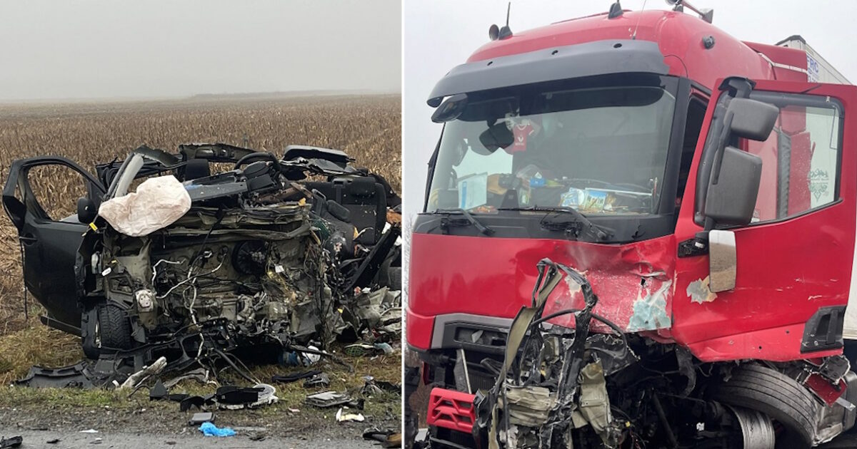 Ο οδηγός του βαν στην προσπάθειά του να κάνει μία προσπέραση, σε δρόμο που επιτρεπόταν, φαίνεται στο «σκληρό» βίντεο να χάνει τον έλεγχο και να καταλήγει πάνω σε νταλίκα που ερχόταν από την αντίθετη κατεύθυνσή, στην εθνική οδό, κοντά στην περιοχή Lugojelul, στην είσοδο του περιφερειακού δρόμου του Lugoj.