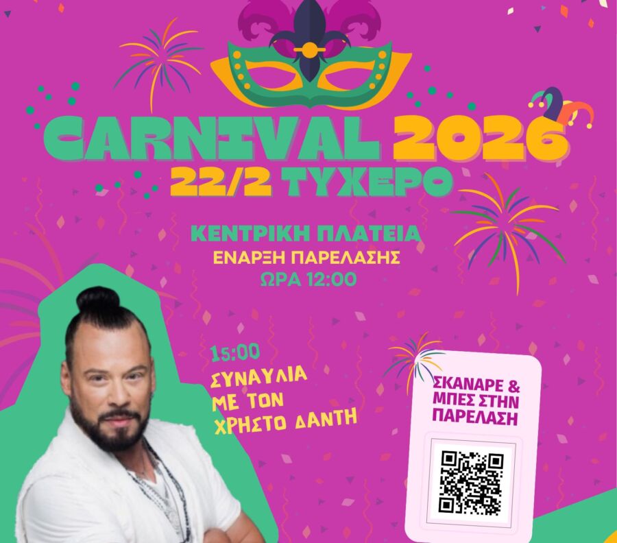 Την Κυριακή 22 Φεβρουαρίου, με καρναβαλική παρέλαση και τη μεγάλη συναυλία του Χρήστου Δάντη
