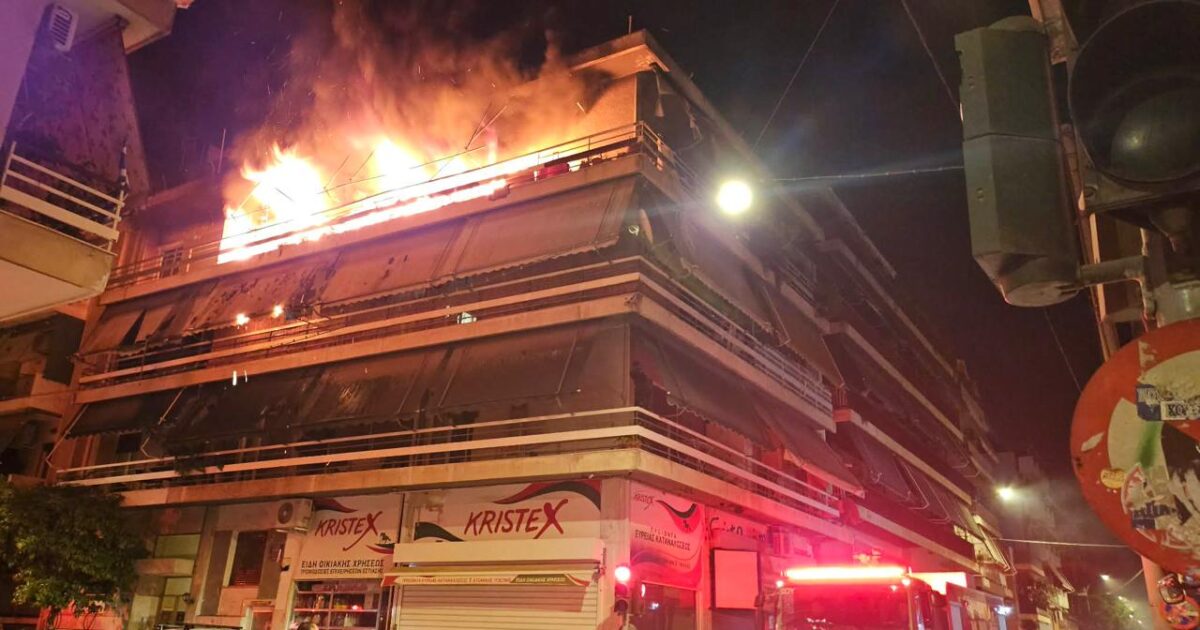 Το φλεγόμενο διαμέρισμα στον Κολωνό