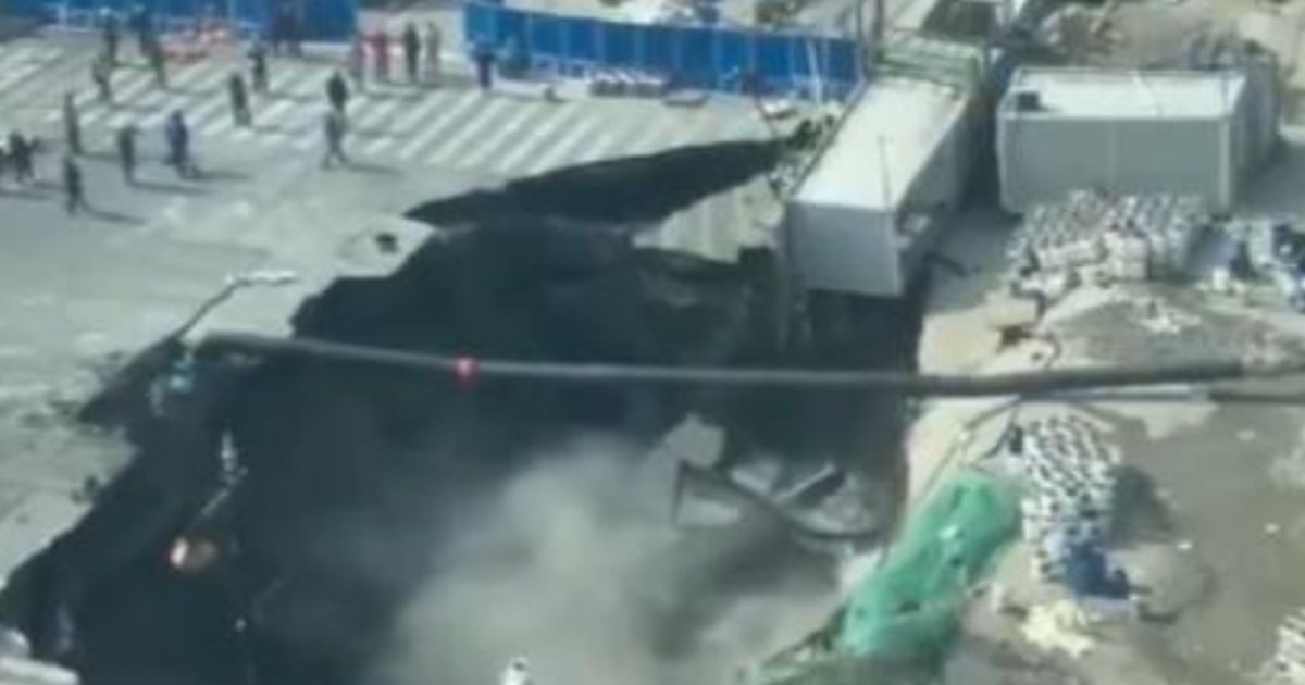 A massive sinkhole has opened up, swallowing a key section of roadway in Shanghai, China. pic.twitter.com/cHqpihXZzQ