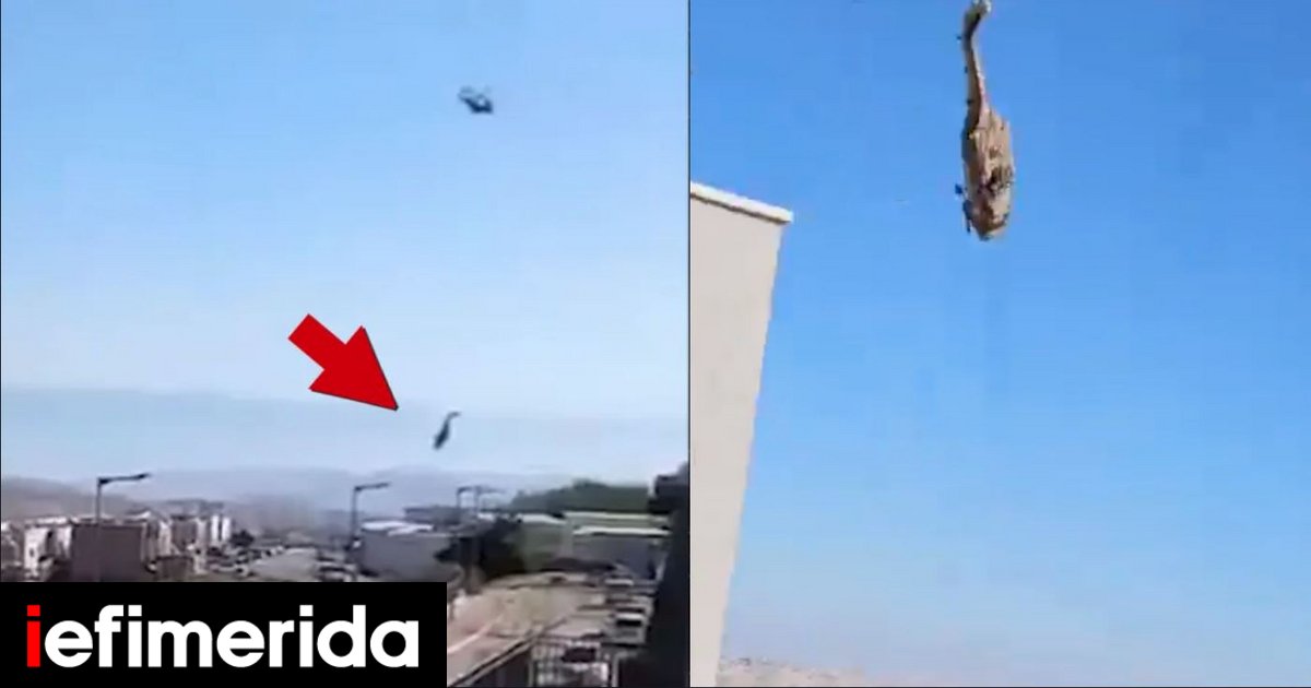 Δραματικές εικόνες καταγράφουν τη στιγμή που ελικόπτερο της Πολεμικής Αεροπορίας του Ισραήλ αποσπάται από τα ιμάντα ανάρτησης και πέφτει στο έδαφος, κατά τη διάρκεια επιχείρησης αερομεταφοράς από δεύτερο ελικόπτερο.