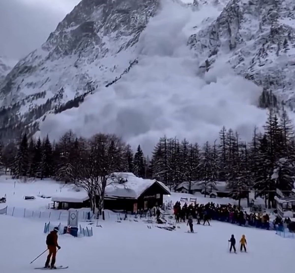 Το περιστατικό σημειώθηκε την Τρίτη κοντά στο χιονοδρομικό κέντρο του Κουρμαγιέ (Courmayeur), στην περιοχή Val Veny, κοντά στον αναβατήρα Zerotta. Στο βίντεο που κυκλοφόρησε στα μέσα κοινωνικής δικτύωσης, ομάδα σκιέρ φαίνεται να περιμένει σε καρέκλα-αναβατήρα στην απέναντι πλαγιά, όταν ξαφνικά τεράστιος όγκος χιονιού και πάγου αποκολλάται και κατρακυλά με ταχύτητα.
