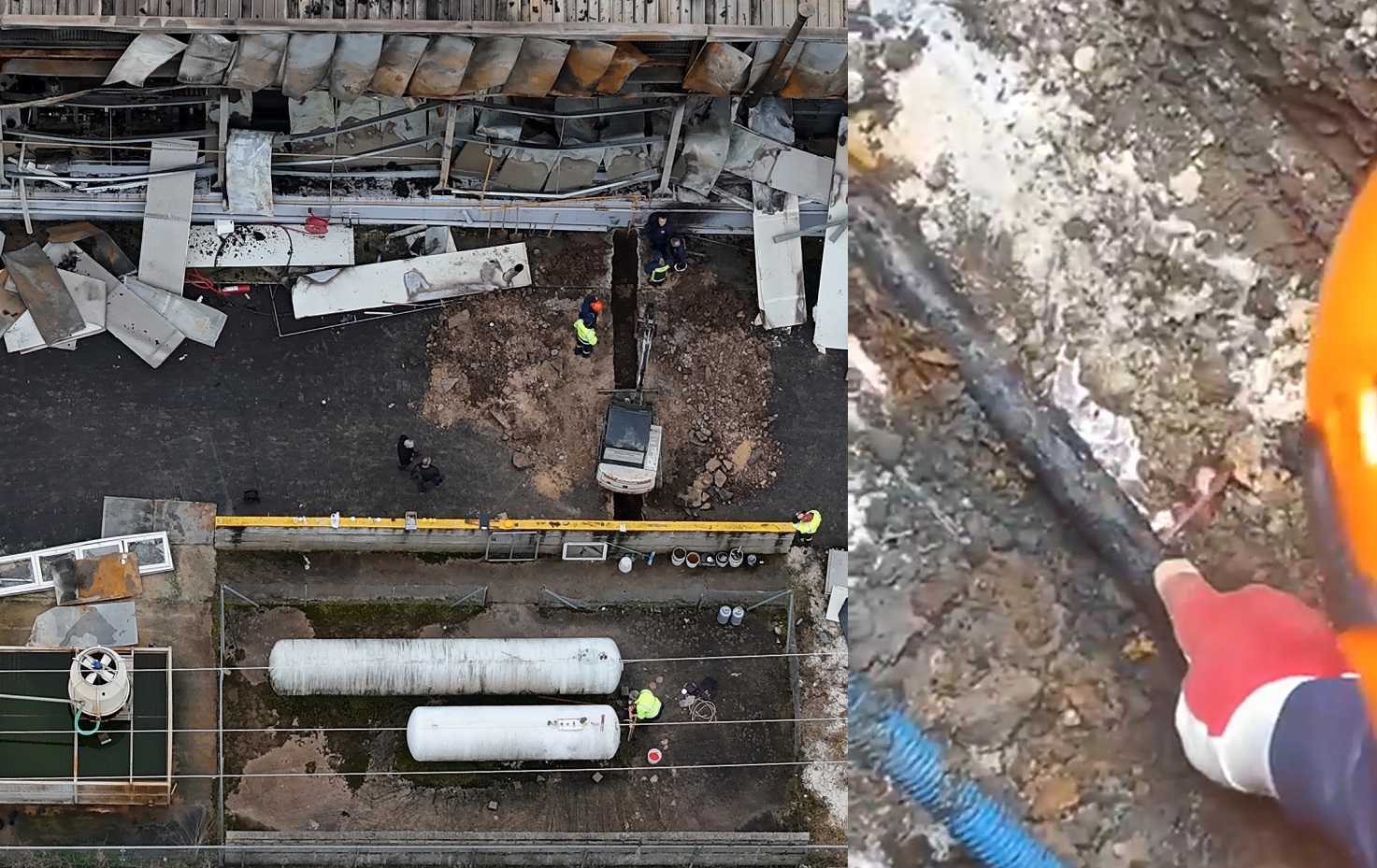 Οι φωτογραφίες και τα βίντεο από το σημείο των ερευνών αποκαλύπτουν την κακή συντήρηση του δικτύου σωληνώσεων που μετέφερε προπάνιο για τη λειτουργία των φούρνων του εργοστασίου. Όπως αναφέρει η ΕΡΤ, ακόμα και ένας μη ειδικός μπορεί να διακρίνει την εκτεταμένη οξείδωση και τις οπές από όπου διέφευγε ανεξέλεγκτα το καύσιμο στο υπέδαφος.