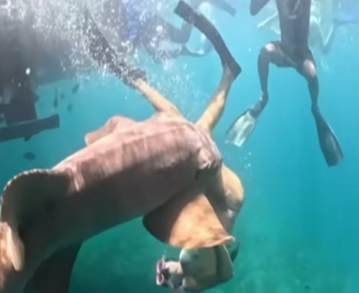 Στο βίντεο η γυναίκα φαίνεται αρχικά να βουτάει από σκάφος στα καταγάλανα νερά, χωρίς να αντιλαμβάνεται τον κίνδυνο που πλησιάζει. Ελάχιστα δευτερόλεπτα αργότερα, ένας μεγάλος καρχαρίας εμφανίζεται με ταχύτητα και της αρπάζει το πόδι.