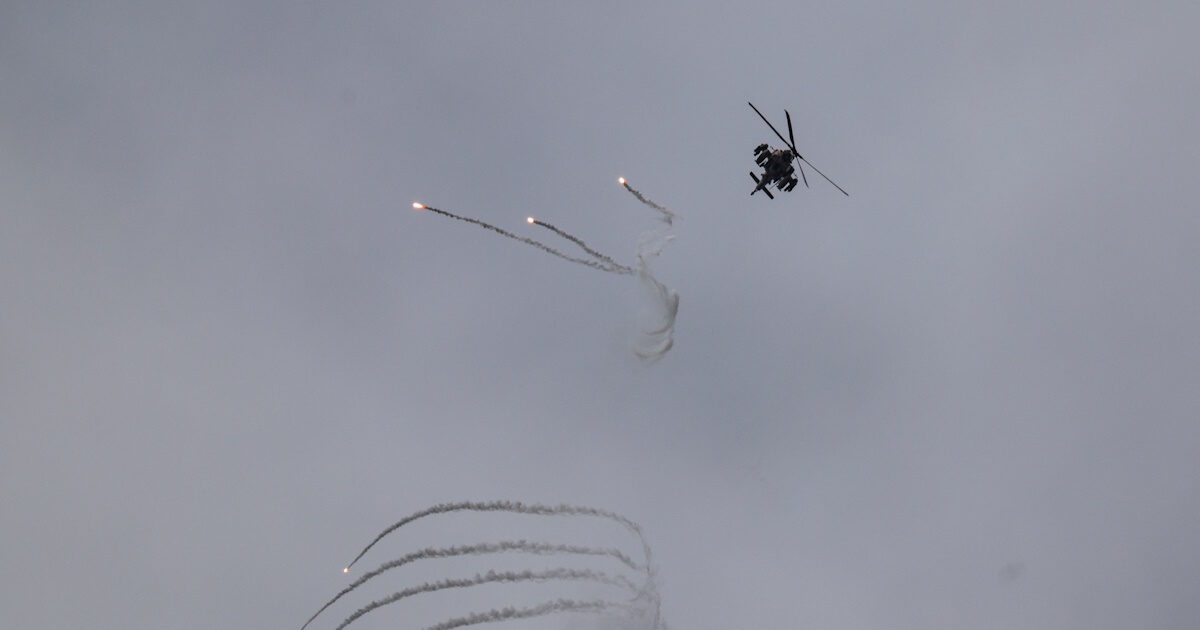 Ισραηλινό Apache απελευθερώνει flares για να μη χτυπηθεί από αντιαεροπορικά βλήματα πάνω από τον νότιο Λίβανο